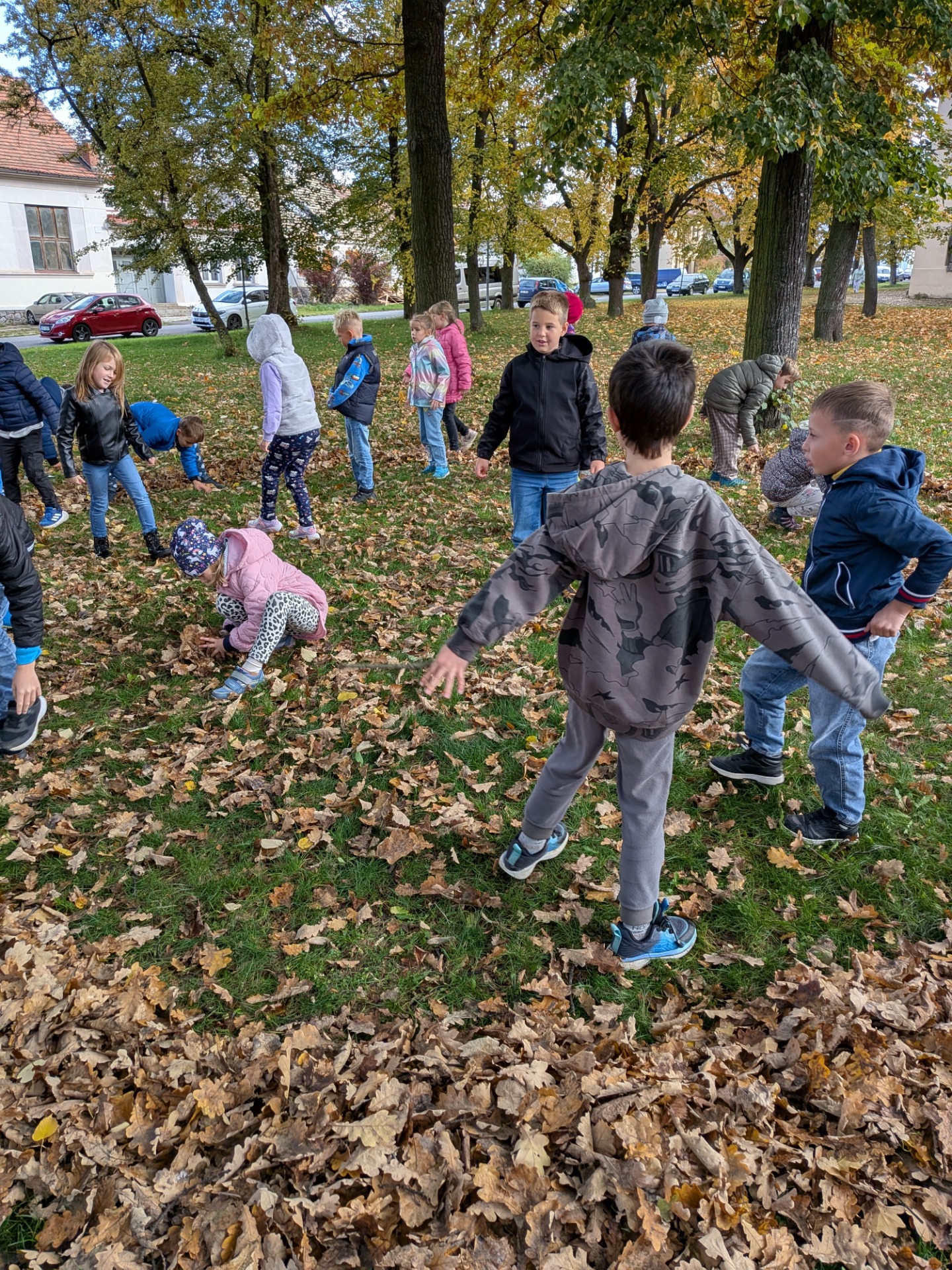 Výtvarné tvoření z listů v parku.