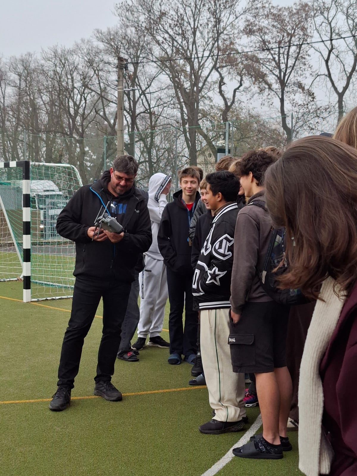 Přednáška začala ve třídě, kde bylo žákům vysvětleno, kde a jak se drony využívají, kde jsou přínosné. Poté se žáci odebrali na školní hřiště, kde zhlédli praktickou ukázku.